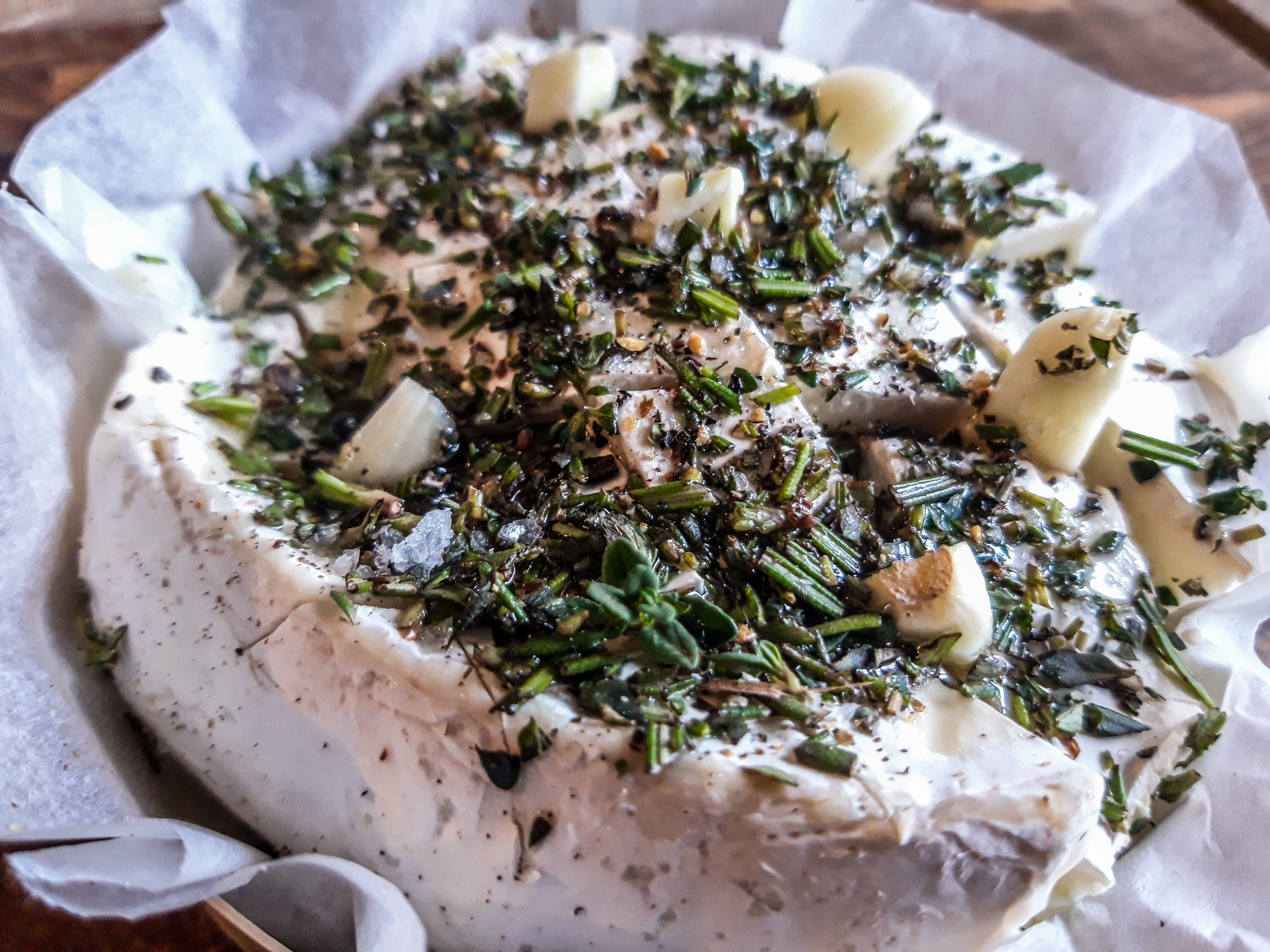 Next drizzle 20ml of truffle oil over the top of your Wigmore. Chop and sprinkle 5g of fresh rosemary and thyme evenly across your cheese.