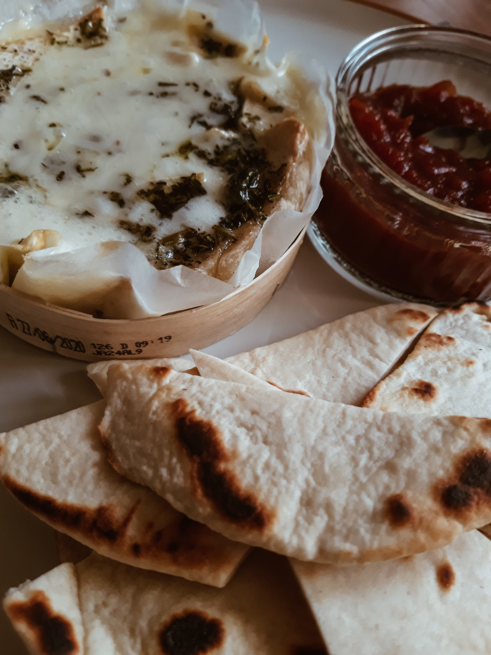 Then your homemade flatbreads are ready to be dipped in cheese. Go wild!