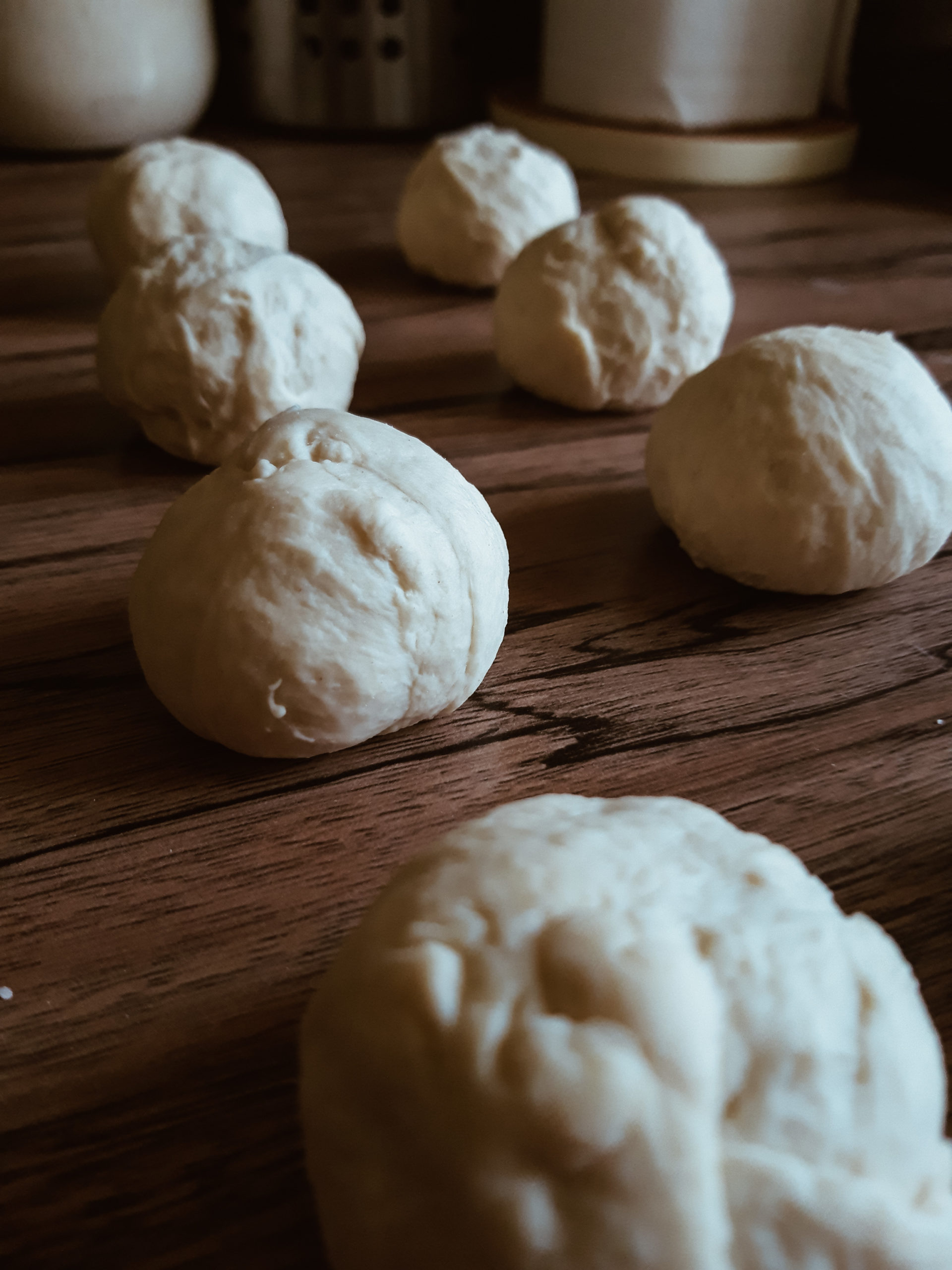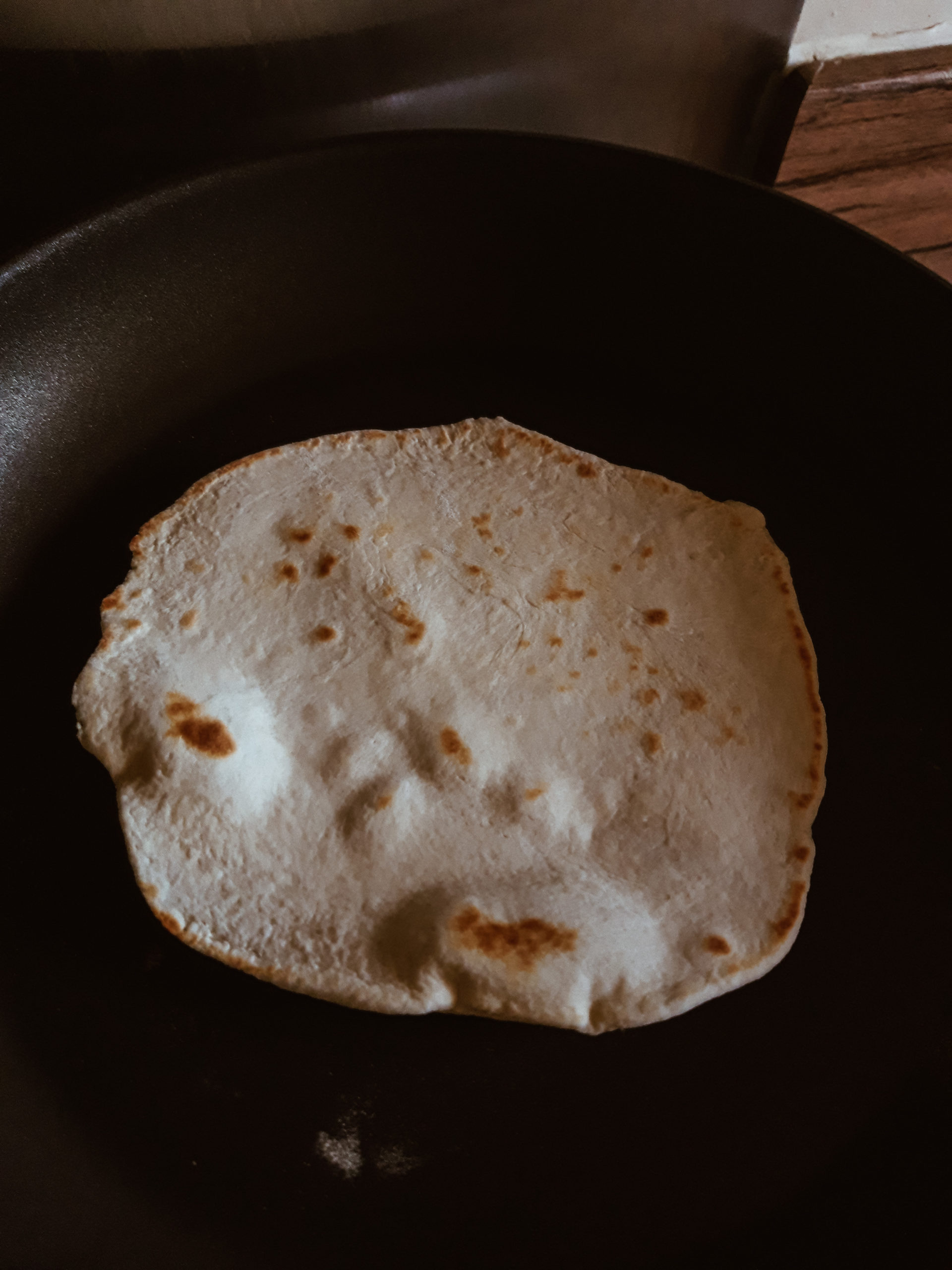 Roll your 50g ball out into flatbreads, then dry fry in a hot pan until cooked.