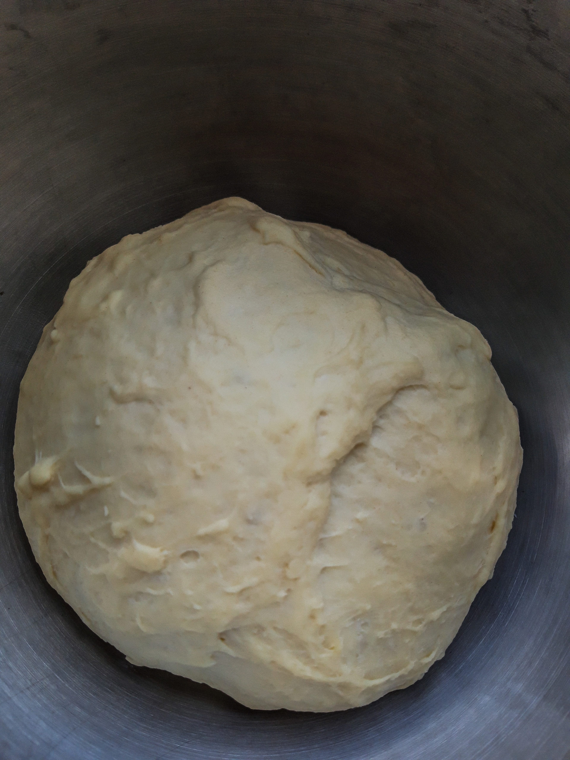 Once your yeast has dissolved, use the dough hook setting on your mixer to combine your two mixtures to create your dough.